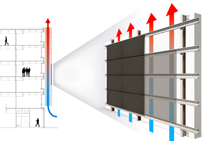 Fasad pengudaraan tidak hanya memberikan perlindungan bangunan yang dapat dipercayai, tetapi juga iklim mikro ruang dalaman yang optimum