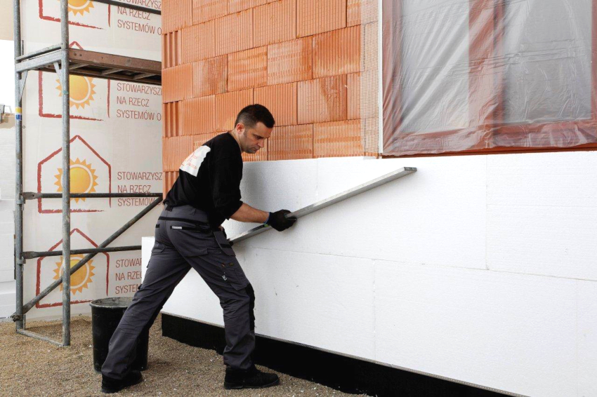 Penebatan fasad dengan polistirena yang diperluas dianggap berkesan kerana struktur sel tertutup bahan. 98% penebat haba adalah udara atau gas lengai yang mengisi sel tertutup rapat, yang memberikan lembaran dengan berat yang rendah. Polyfoam tidak rentan terhadap penyerapan kelembapan, yang bermaksud ia dapat digunakan secara efektif baik untuk fasad maupun untuk penebat pondasi, ruang bawah tanah dan ruang bawah tanah yang sentiasa lembap. Bahannya optimum untuk penebat fasad rumah dari luar di bawah plaster. Kelebihan menggunakan polistirena yang diperluas:
