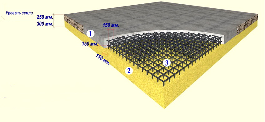 Setelah menentukan jumlah tetulang, papak itu sendiri dikira. Ketebalan minimumnya ialah 15 cm. Kedalaman pembekuan tanah adalah ciri utama yang mesti dipandu semasa memilih penunjuk ini. Terdapat satu peraturan penting: stok konkrit yang terletak di tepi mesh tetulang hendaklah sekurang-kurangnya 5 cm.