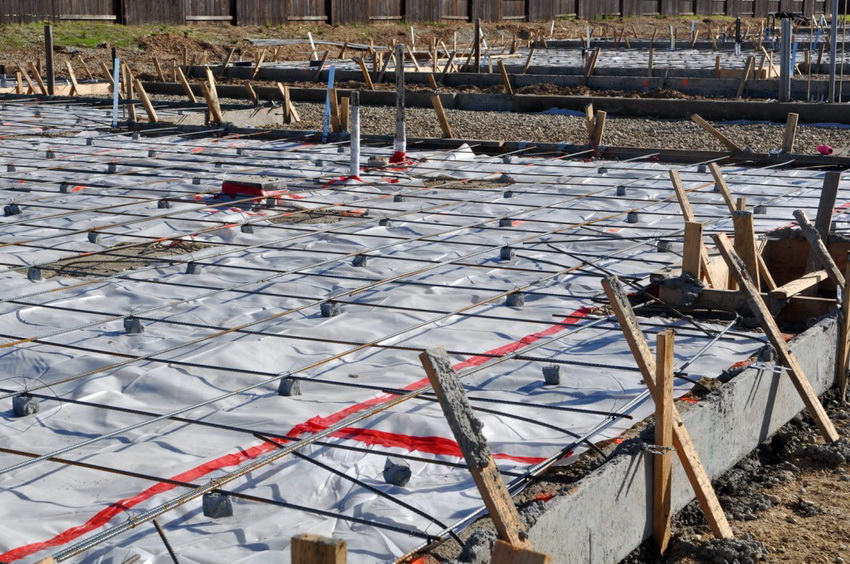 Seterusnya, penebat haba dilakukan. Ia boleh didapati dalam dua versi: gulungan dan papak. Penebat haba terdiri daripada polistirena yang diperluas (PPS), yang mempunyai ketumpatan tinggi. Kemudian muncul lapisan utama - konkrit, di dalamnya terdapat dua kisi-kisi bertetulang. Mereka bertujuan untuk meningkatkan integriti dan kekuatan struktur. Sebagai contoh, asas monolitik untuk lajur mestilah sangat kuat.