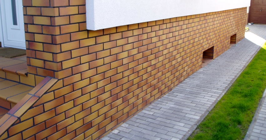 Jubin klinker untuk ruang bawah tanah melakukan dua fungsi sekaligus: melindungi, melindungi penebat dan dinding luar pondasi dari pemendakan atmosfera dan pengaruh mekanikal, dan hiasan, memberikan bangunan itu kelihatan estetik dan mulia.