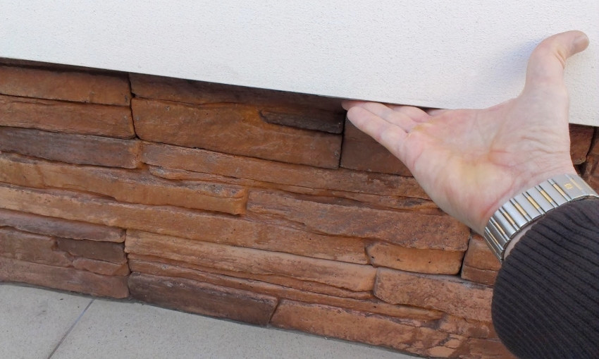 Kemasan dengan batu buatan atau semula jadi hanya boleh dilakukan jika terdapat permukaan asas / tiang yang diperkuat dan adanya talang