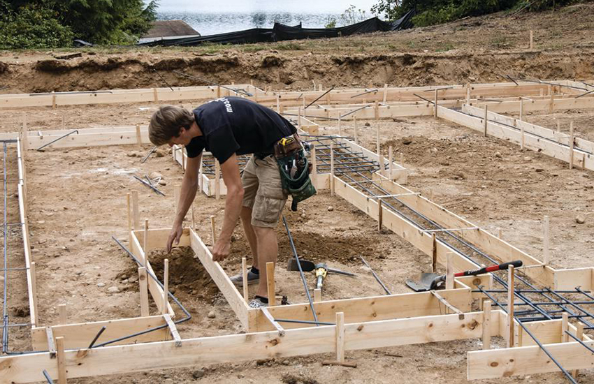 - pemasangan bekisting antara tiang konkrit bertetulang untuk membuat grillage, ketinggiannya harus melebihi ketinggian struktur masa depan sebanyak 5-10 cm;
