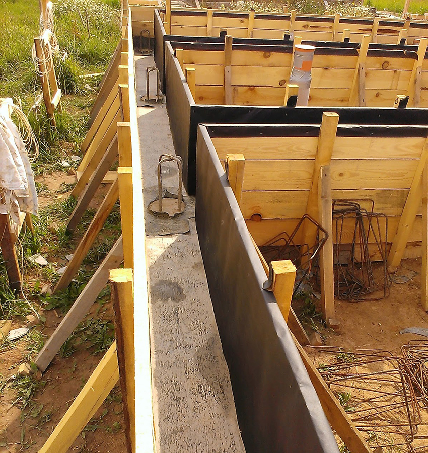 Unsur-unsur formwork menegak dipasang, yang dipaku pada papan mendatar. Dianjurkan untuk menggunakan papan kayu pepejal atau papan serpai untuk bekisting. Bahagian dalam formwork pasang siap hendaklah ditutup dengan bungkus plastik. Dimensi formwork mesti melebihi ketinggian grillage masa depan sekurang-kurangnya 5 cm.