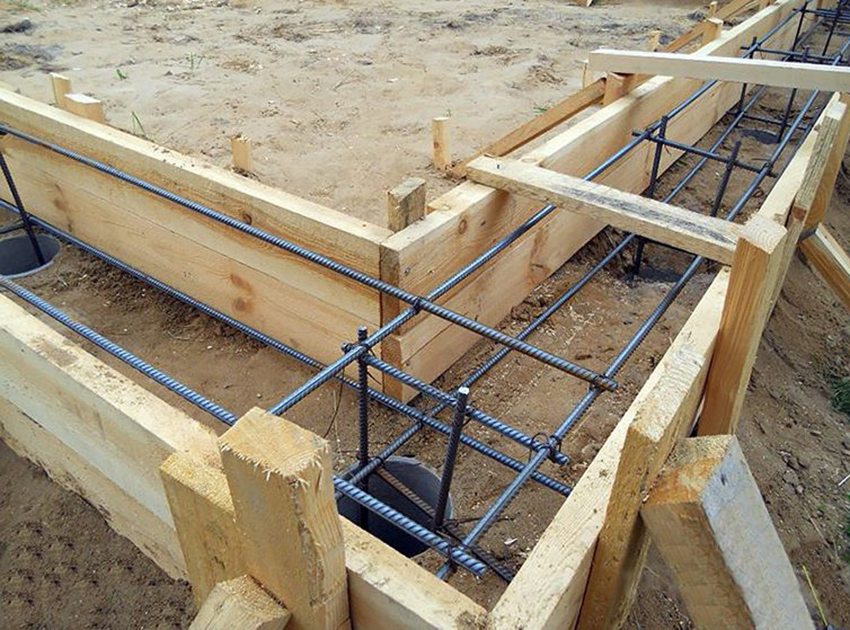 Langkah seterusnya adalah pemasangan bekisting di bawah landasan pada cerucuk konkrit. Untuk ini, penandaan dilakukan dengan langkah 0,5-0,8 m dengan mengemudi pasak dengan keratan 5x5 cm sepanjang keseluruhan perimeter struktur. Seterusnya, papan kayu mendatar diletakkan, di mana lubang pra-potong untuk cerucuk.