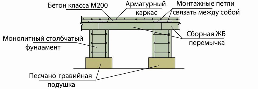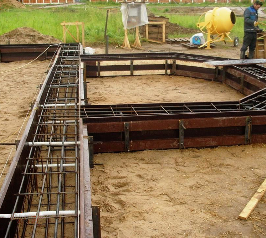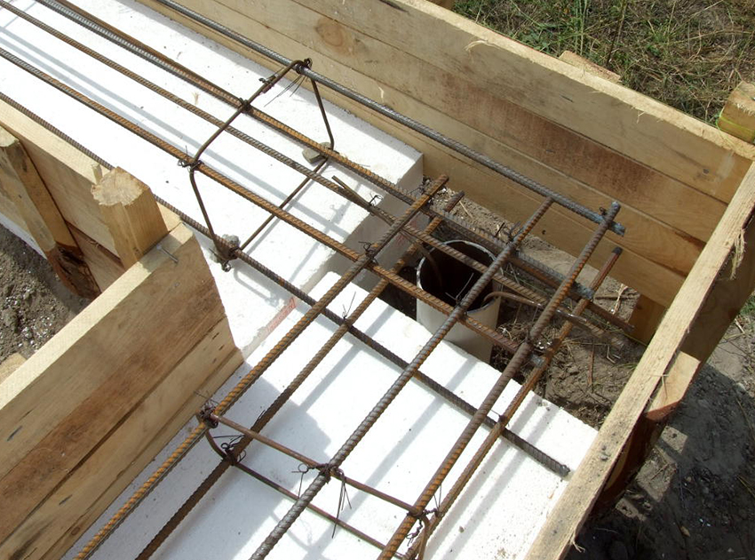 Sebelum mencurahkan lintel mendatar dengan konkrit, paip khas harus diletakkan di mana komunikasi kejuruteraan, seperti bekalan air, pemanasan, pembetungan dan komunikasi akan melalui. Terdapat juga lubang pengudaraan di pangkalan.