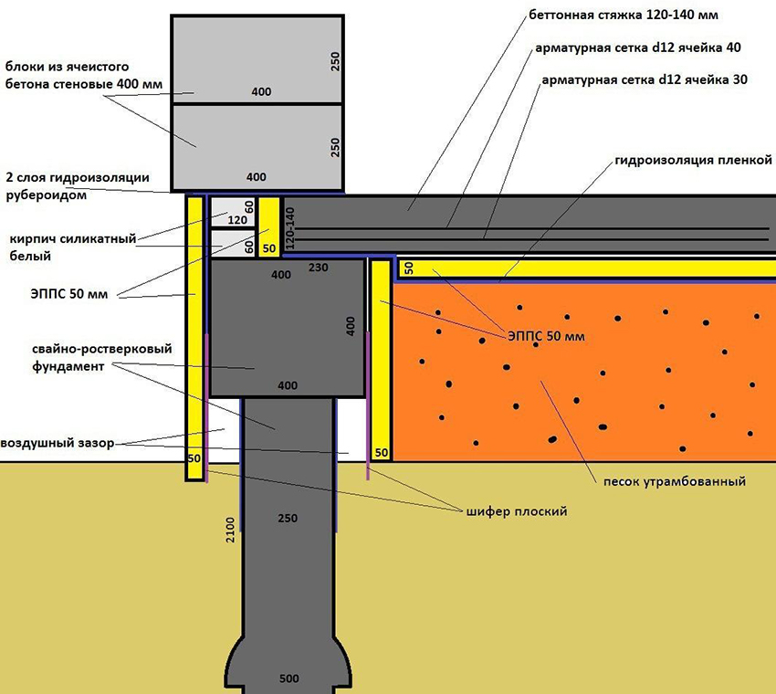 Dalam praktiknya, terdapat kes-kes apabila projek ini tidak menyediakan penciptaan jurang udara di bawah grillage. Ini amat berbahaya semasa musim sejuk tahun ini, apabila tanah beku mengembang dengan ketara ke arah yang berbeza, termasuk secara menegak. Ini akan menimbulkan tekanan yang berlebihan di bahagian bawah grillage, yang boleh menyebabkan kerosakan atau kerosakan. Untuk menghapuskan ini, anda harus berhati-hati mengatur lapisan penebat dalam bentuk plat polistirena yang diperluas, yang juga akan memainkan peranan penyusutan tiruan.