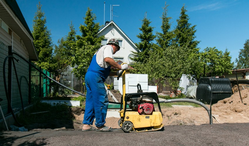 Sebelum mencurahkan konkrit, perlu menyiapkan kawasan yang rata dan mengetatkannya dengan mesin khas