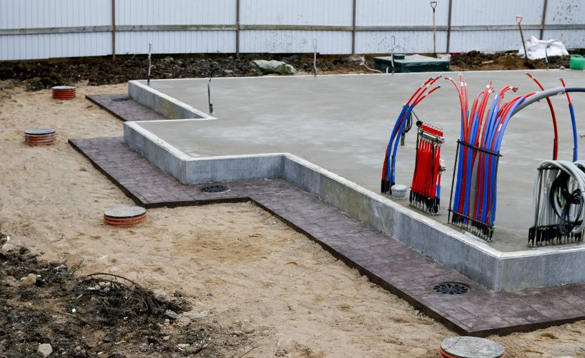 Sebelum memulakan pembinaan, paip harus disediakan untuk semua komunikasi dan gambarajah lokasinya harus dibina.Di sekitar landasan pondasi, adalah mustahak untuk menyediakan sistem saliran, berkat kelembapan yang dikeluarkan dari dasar bangunan.