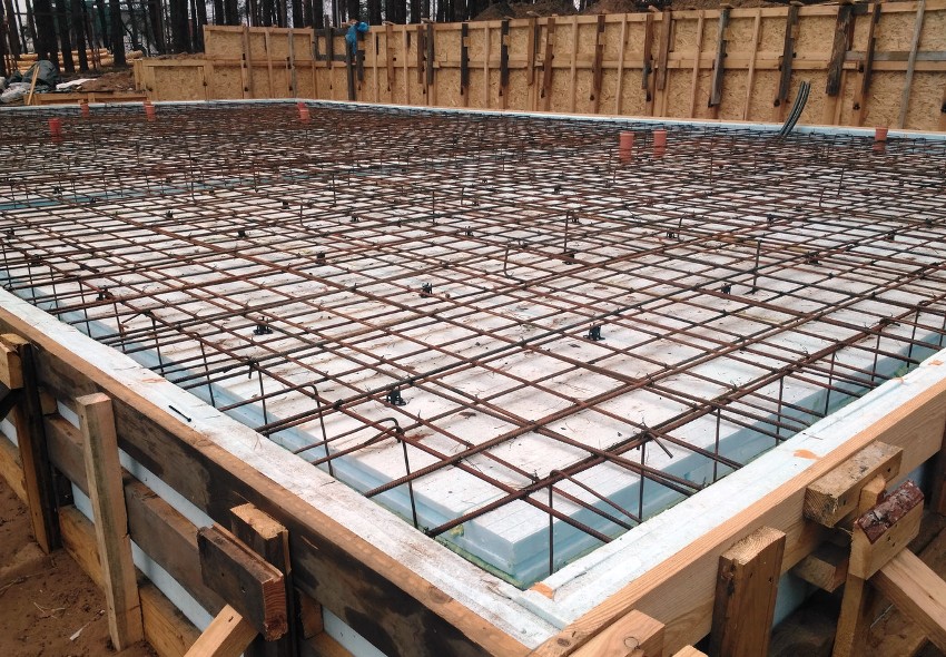 Di yayasan USHP, seluruh kawasan ditutup dengan mesh penguat yang dikimpal, dan batang penguat digunakan pada tulang rusuk yang mengeras