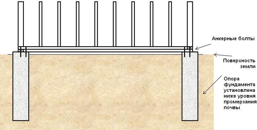 Kedalaman pondasi secara langsung bergantung pada jenis tanah di tapak pembinaan. Sekiranya mempunyai kadar pengangkatan yang tinggi, kedalaman peletakan harus tidak kurang dari kedalaman pembekuan yang dikira. Apabila tanah tidak berpori secara kondisional, kedalaman peletakan dapat dari 0,5 meter hingga satu meter, bergantung pada kedalaman pembekuan. Di tanah yang tidak berbatu (misalnya, jenis berbatu atau pasir kasar), kedalaman pondasi hendaklah sekurang-kurangnya setengah meter.