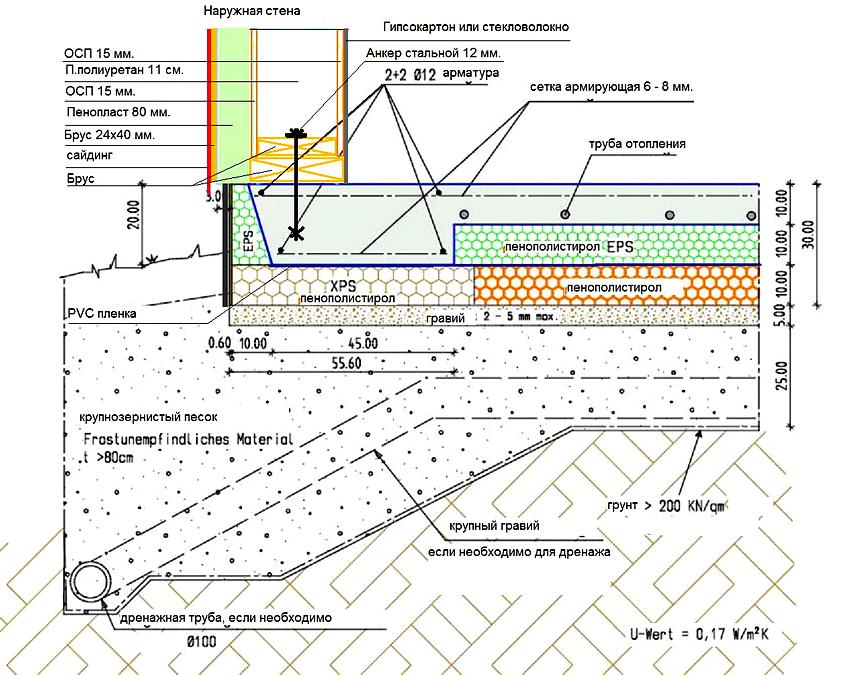 - kedalaman meletakkan asas - untuk parameter ini anda harus selalu menambahkan keperluan untuk kalis air dan saliran untuk pondasi. Perkara ini wajib dilakukan sekiranya terdapat sungai atau tasik berhampiran rumah, serta jika terdapat peningkatan paras air bawah tanah;