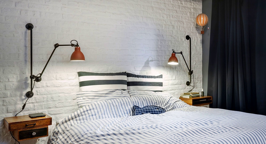 Lampu dinding di bilik tidur untuk membaca dan bersantai dengan selesa