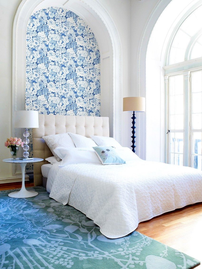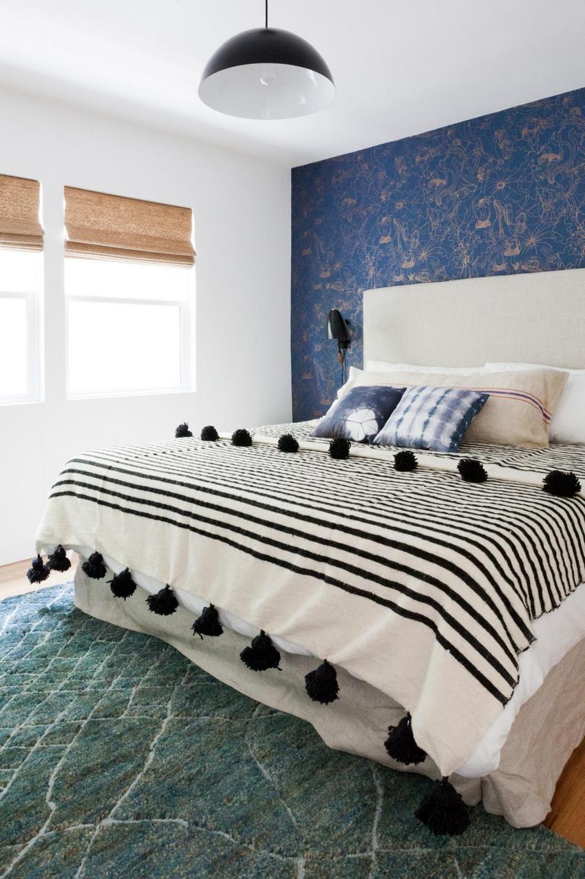 Fabrik karpet berfungsi paling baik di dinding di belakang katil.