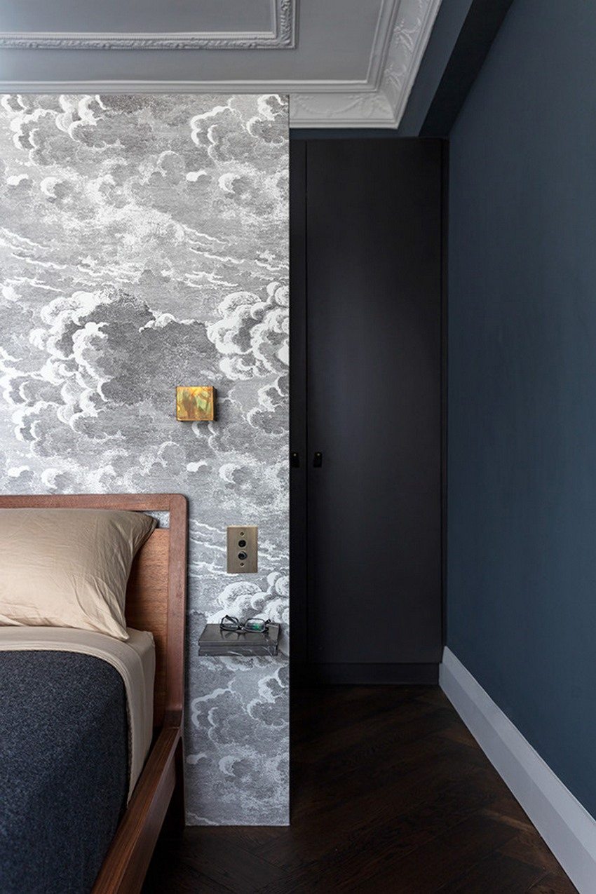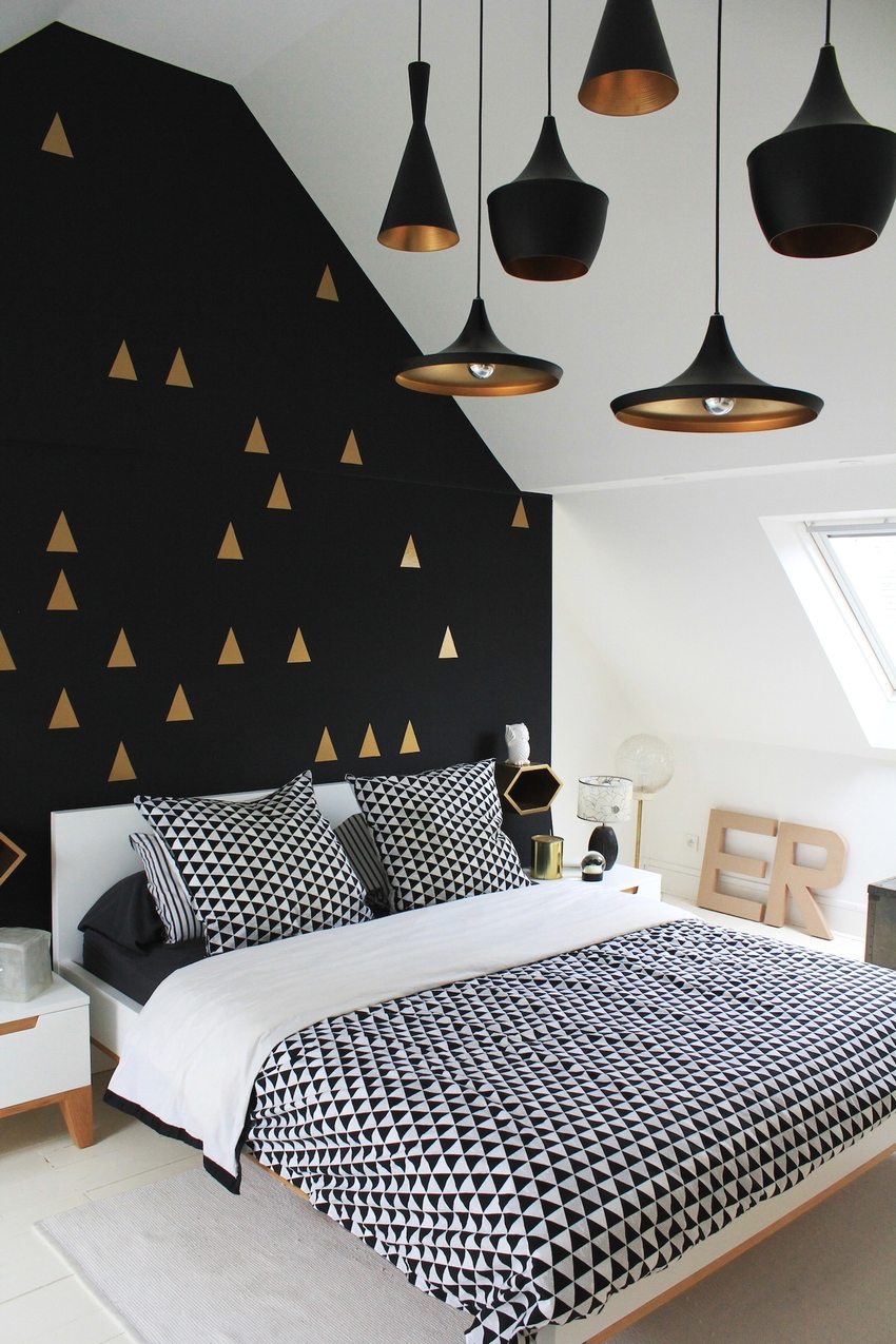 Gabungan kertas dinding putih dan hitam kelihatan harmoni secara umum reka bentuk bilik tidur