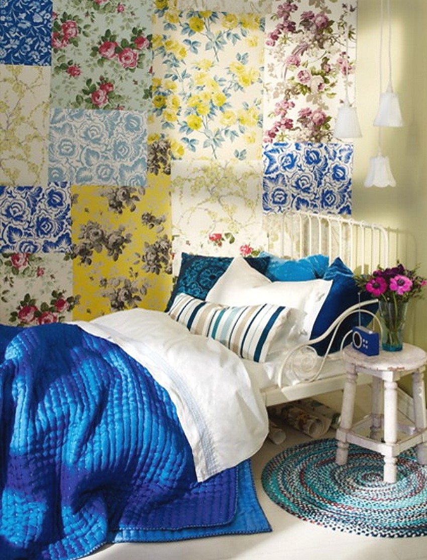 Hiasan jenis ini menguntungkan kerana dinding tambal sulam dapat dibuat dari sisa-sisa kertas dinding yang tidak digunakan sepenuhnya semasa pembaikan sebelumnya. Dalam beberapa kes, mungkin perlu membeli beberapa gulungan untuk mencapai kombinasi yang harmoni antara warna dan tekstur.