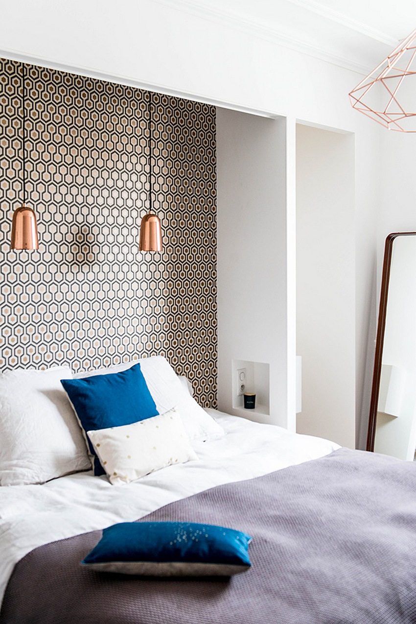 Kaedah membahagi dinding dan ciri-ciri wallpaper di bilik tidur: foto di pedalaman