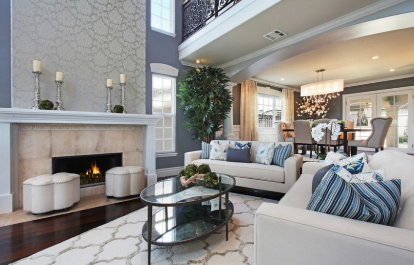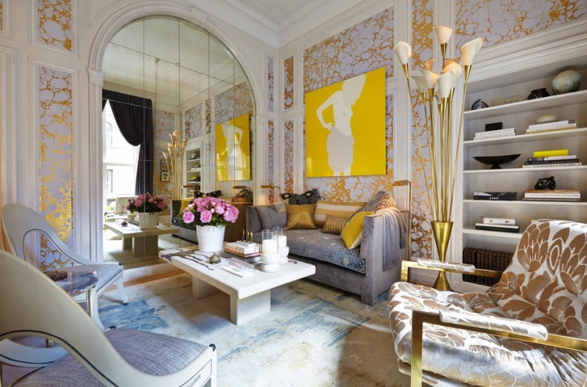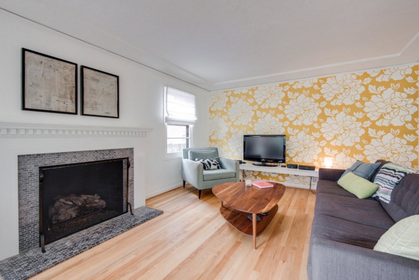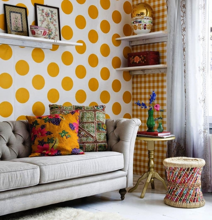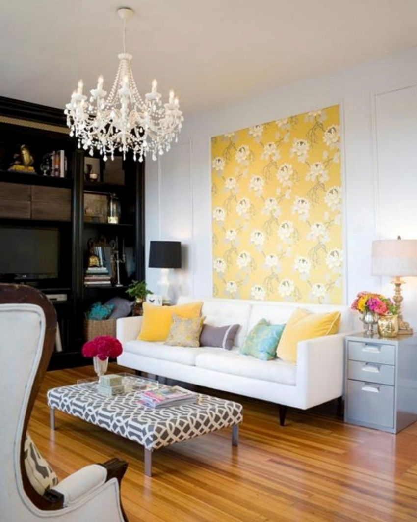 Kertas dinding untuk ruang tamu: gambar dalaman dengan reka bentuk yang menarik