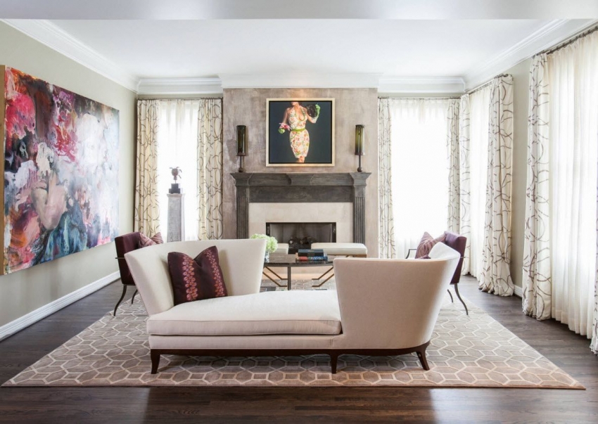 Petua untuk merancang gabungan kertas dinding di ruang tamu: gambar dalaman bergaya