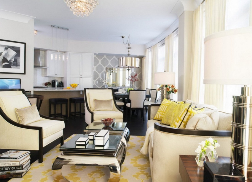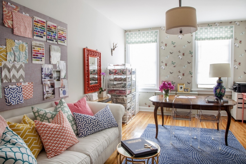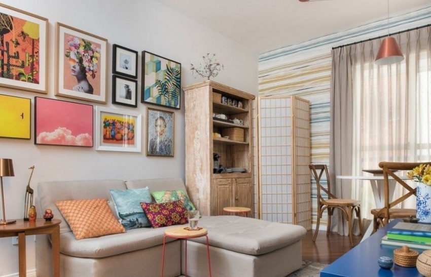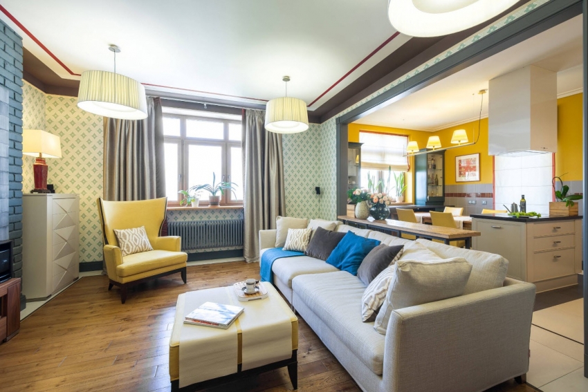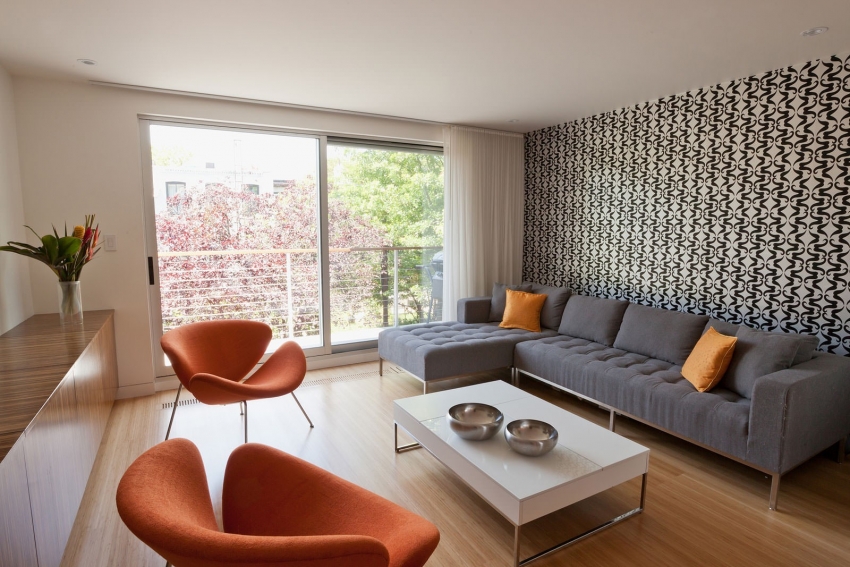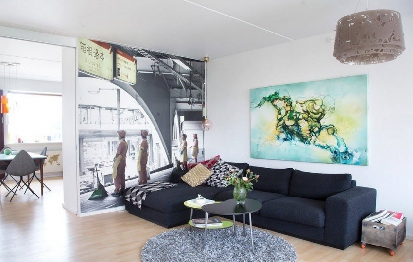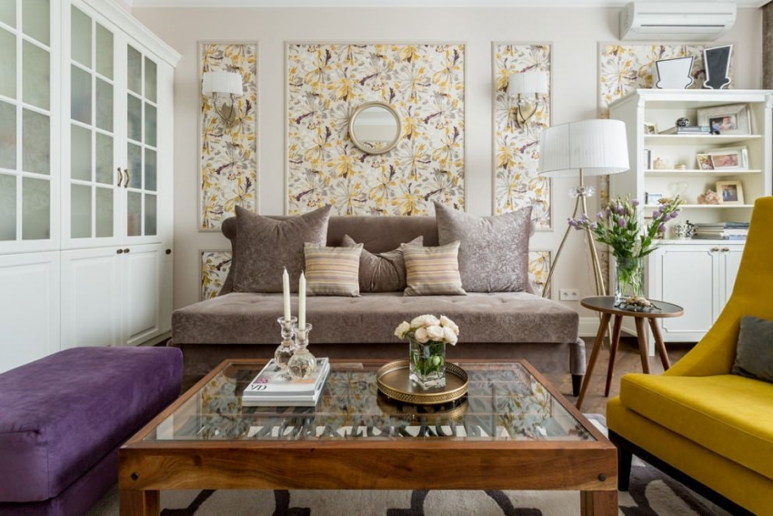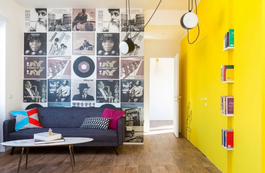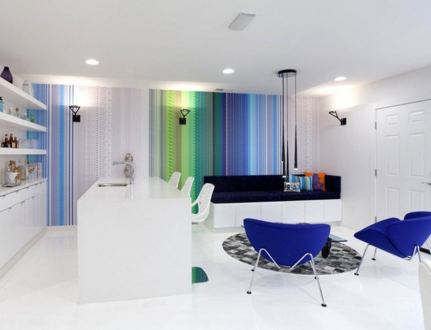 Kami menggabungkan kertas dinding di ruang pangsapuri dengan betul: foto dalaman dengan pengezonan