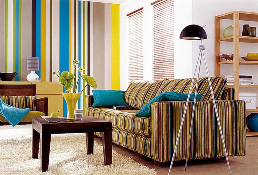Pemanasan melintang kertas dinding berwarna boleh meningkatkan ukuran ruang secara visual, tetapi teknik ini hanya dapat digunakan untuk bilik dengan siling tinggi