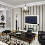 Menggabungkan kertas dinding di ruang tamu dengan betul: foto bahagian dalam dengan teknik perekatan menegak
