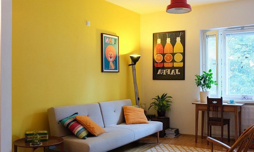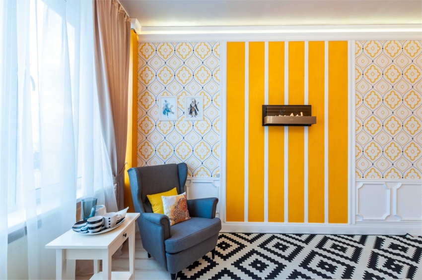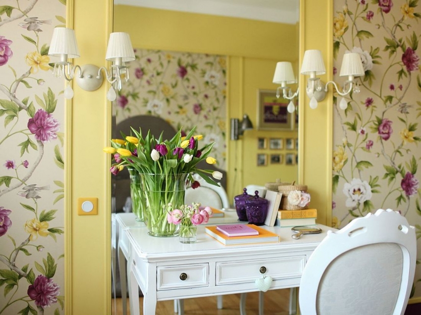 Untuk bilik dengan kekurangan cahaya siang, disarankan untuk menggunakan kertas dinding dalam warna kuning.