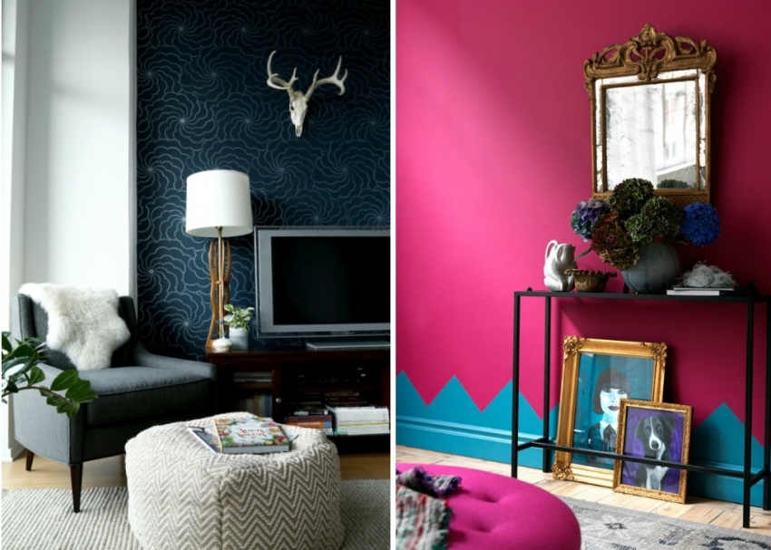 Dinding memainkan peranan penting dalam membentuk bahagian dalam. Selain itu, reka bentuk yang betul tidak hanya bergantung pada pemilihan tekstur dan warna pendamping yang optimum, tetapi juga pada teknik perekatan. Dengan menggabungkan kertas dinding, anda dapat meningkatkan ruang secara visual, serta menekankan arah gaya dan temanya.