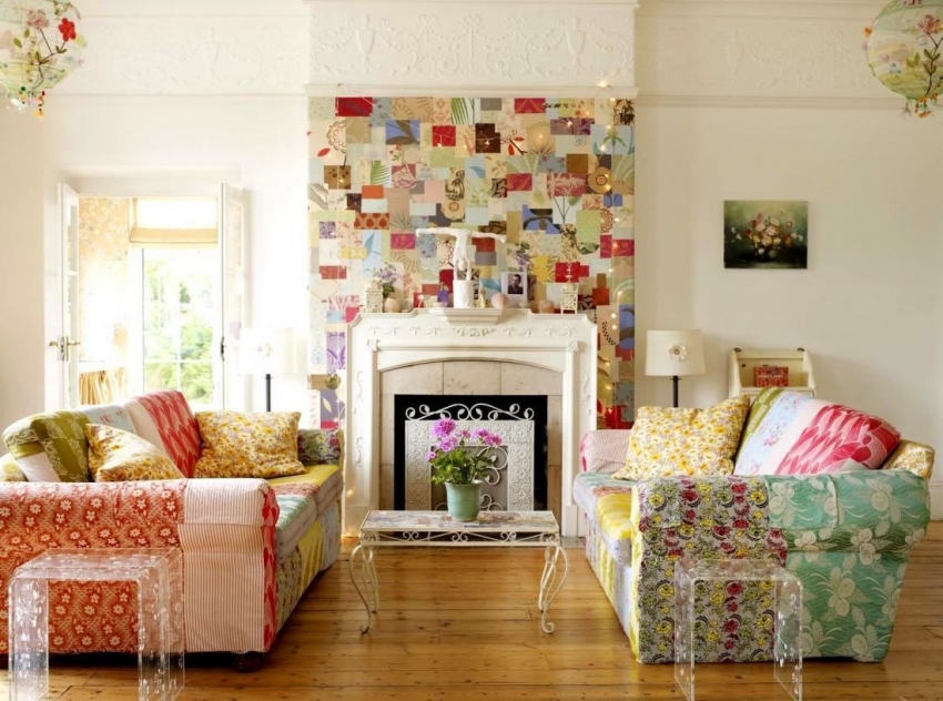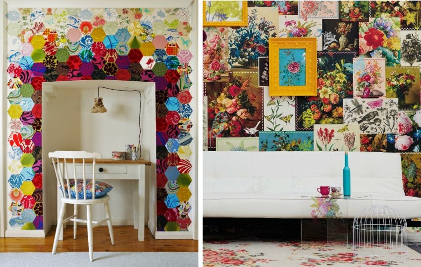 Pada tahun 2017, teknik tampalan menggabungkan kertas dinding menjadi bergaya. Ia melibatkan penggunaan pelbagai kepingan bahan yang digabungkan menjadi komposisi hiasan. Reka bentuknya berdasarkan prinsip membuat selimut tambal sulam menggunakan teknik tampalan. Dalam kes ini, sangat penting untuk memilih warna dan corak bahan yang betul.