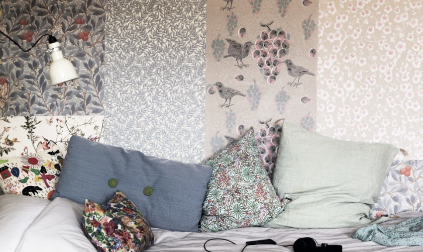 Anda boleh membuat kertas dinding tampalan sendiri dari sisa-sisa kertas dinding dengan pelbagai warna dan warna.
