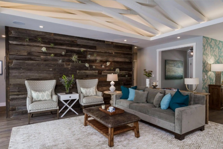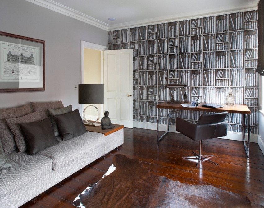 Kertas dinding dengan tiruan bahan semula jadi adalah penyelesaian popular untuk hiasan dalaman pada tahun 2017