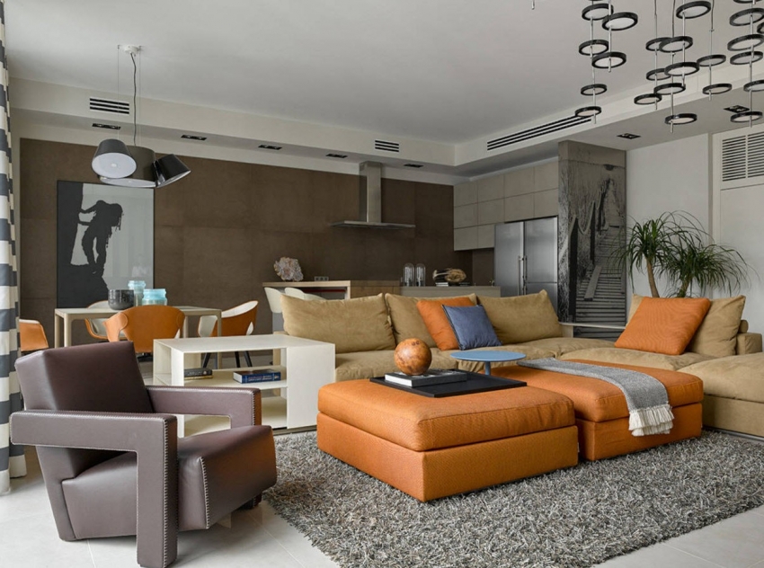 Foto dalaman, penyelesaian reka bentuk moden dan bergaya. Cadangan untuk pilihan warna.