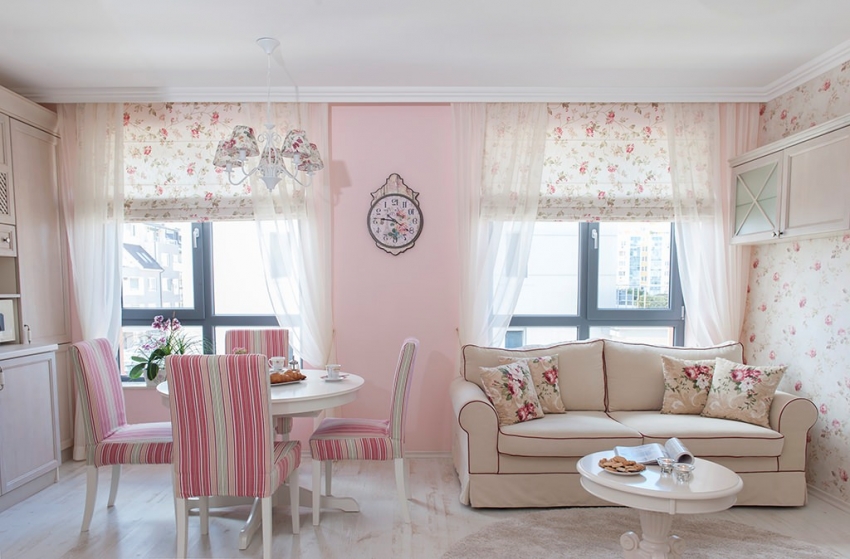 Bahagian dalaman dianggap sesuai jika reka bentuknya mengandungi warna pastel dan terang:
