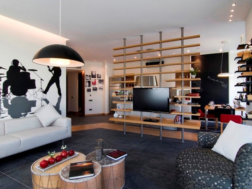 Oleh itu, anda boleh membuat salah satu perabot di tengah-tengah bahagian dalam bilik.