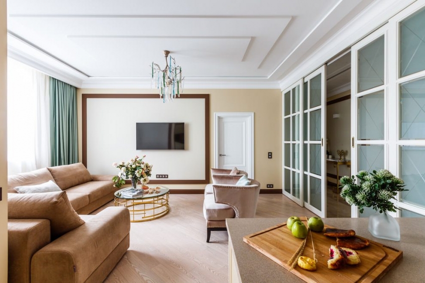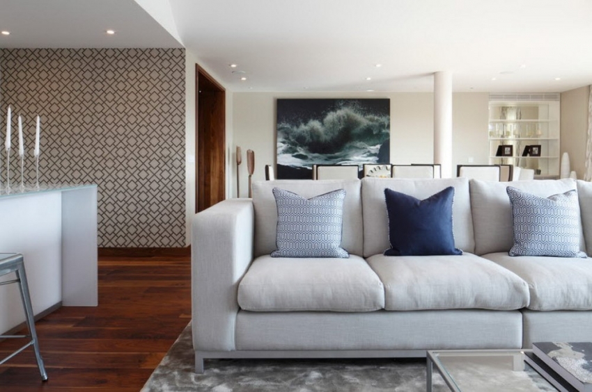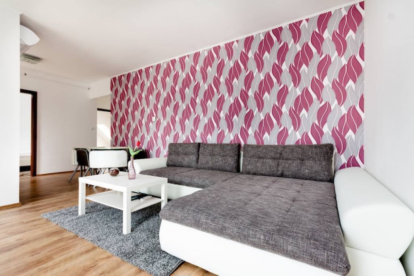 - 1.4 Kami menggabungkan kertas dinding di ruang pangsapuri dengan betul: foto dalaman dengan pengezonan