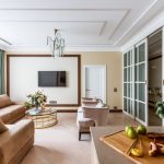 - 3.3 Reka bentuk kertas dinding di dewan: gambar dalaman yang dihiasi dengan peralatan dengan sisipan