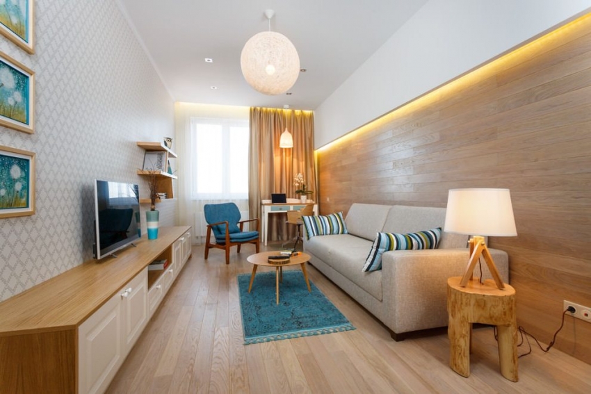- 1.2 Reka bentuk bilik dengan foto: kertas dinding apa yang harus dipilih untuk dewan dengan kekurangan susun atur