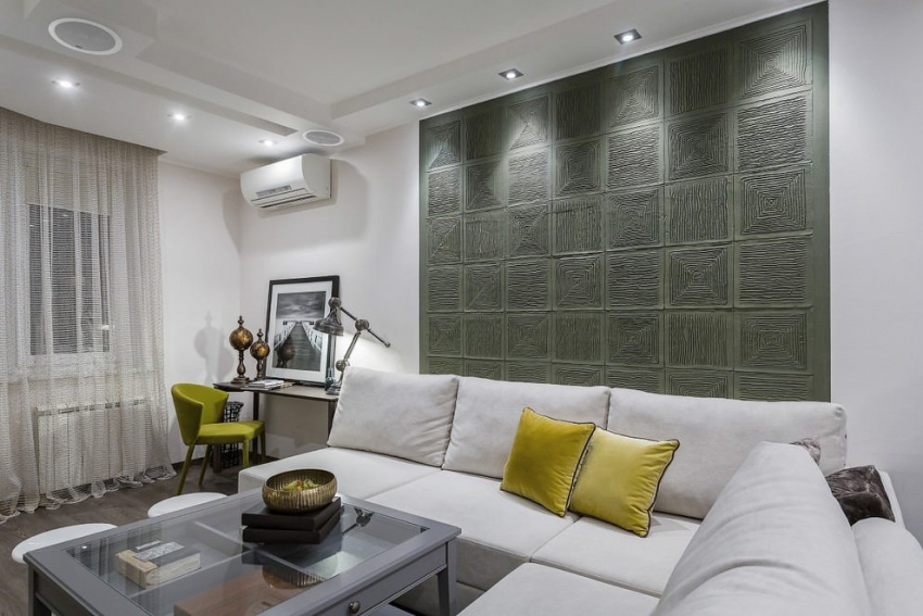 Sekiranya ruangan itu mempunyai kecacatan, pereka menawarkan penyelesaian yang berkesan dan mudah - untuk menonjolkan kelebihan yang ada.