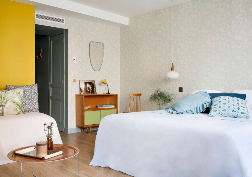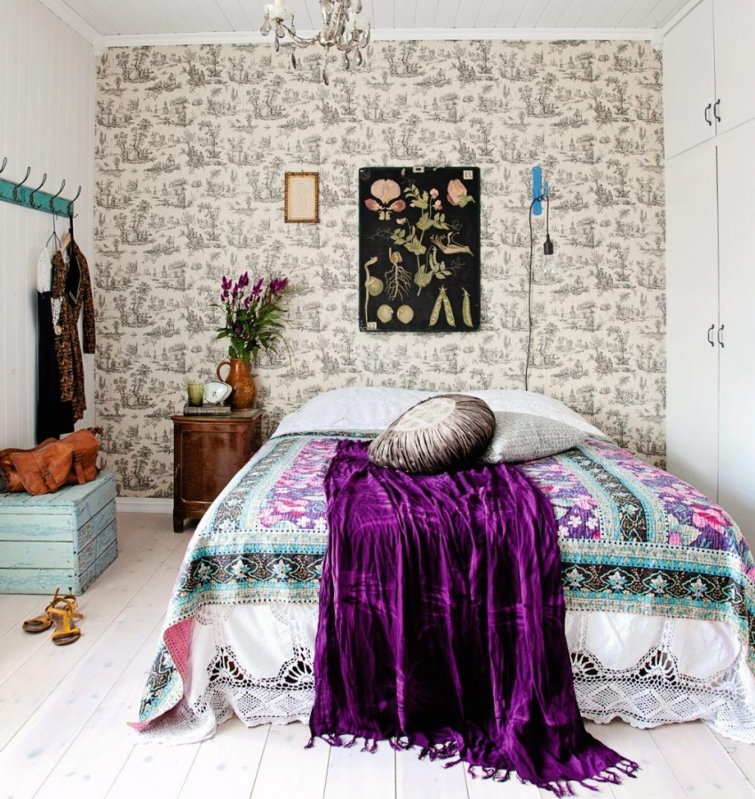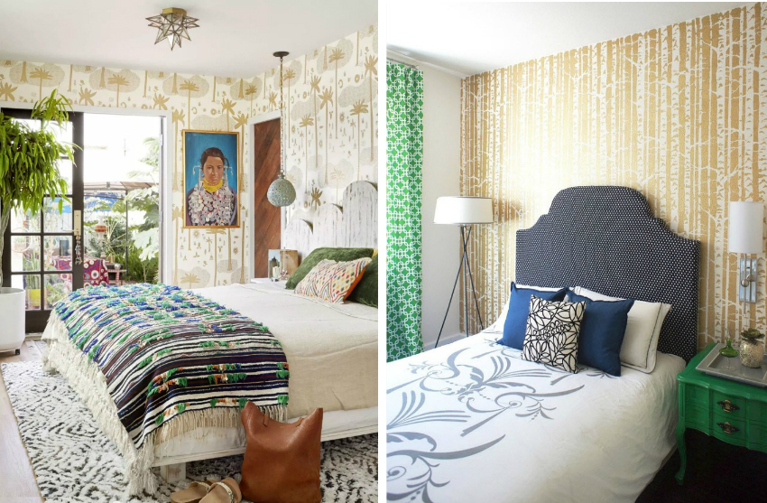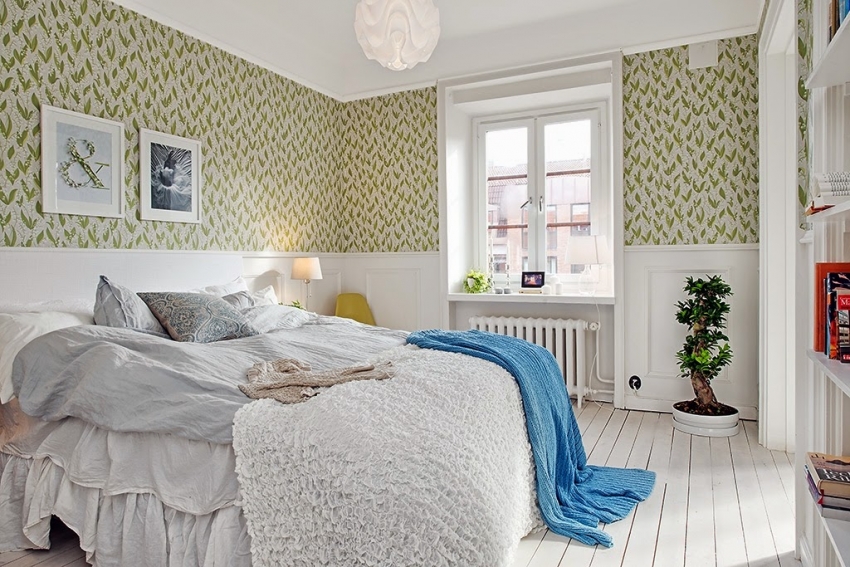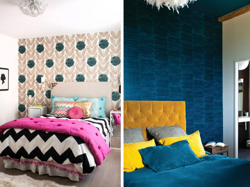 Pelbagai pilihan warna dan warna kertas dinding membolehkan anda membuat bahagian dalam bilik tidur yang unik dan selesa