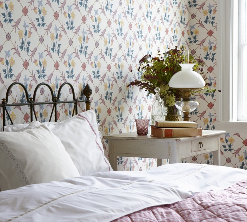 Warna pastel kertas dinding dengan corak bunga atau geometri sesuai untuk hiasan dalaman negara dan Provence