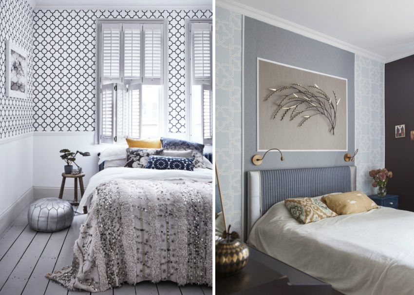 Idea menarik dan gambar gabungan kertas dinding di bilik tidur: reka bentuk 2017