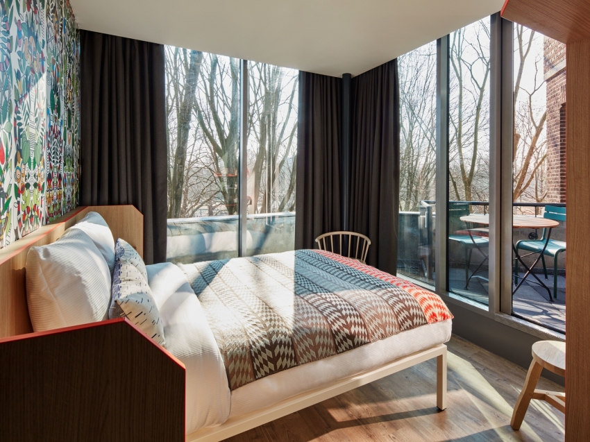 Kaedah pengezonan dapat menambahkan rasa pada bahagian dalam ruang istirahat. Dengan perabot rendah yang dipasang di dalam bas, kertas dinding dapat digunakan untuk membuat reka bentuk simetris yang menyatu dengan seluruh ruangan.