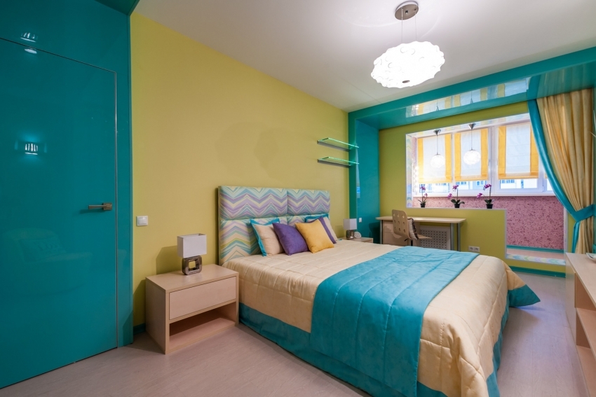 Untuk mewujudkan suasana yang tenang di bilik tidur, disarankan untuk memilih warna yang berdekatan antara satu sama lain dalam keadaan teduh.