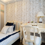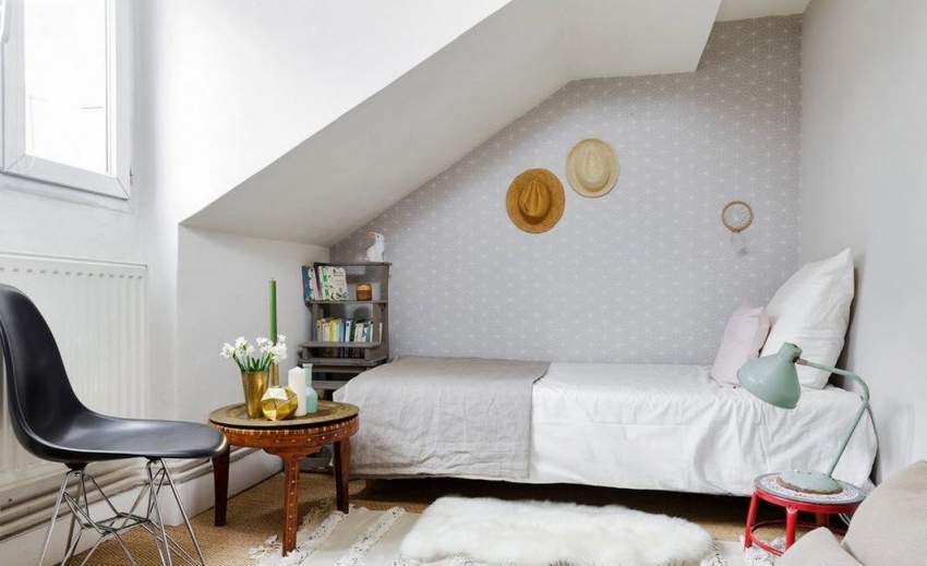 Semasa menghias bilik tidur kecil, penting untuk mempertimbangkan bahawa kertas dinding dengan corak kecil yang berulang secara visual dapat menjadikan ruangan lebih kecil.
