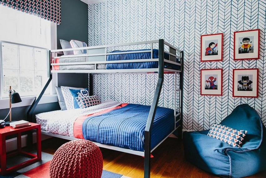 Skema warna kertas dinding untuk bilik tidur kanak-kanak tidak boleh mengganggu dan terlalu terang. Sebaiknya pilih kemasan dengan permukaan yang stabil dan boleh dicuci. Bagi yang sangat kecil, corak abstrak akan mencukupi. Untuk kanak-kanak yang lebih tua, penceritaan sesuai. Anda sering dapat mencari wallpaper dengan gambar pahlawan dongeng, komik, filem kegemaran, permainan atau idola sukan. Semua ini mewujudkan suasana yang selesa untuk anak.