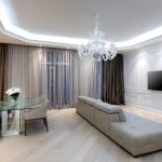 Reka bentuk langsir di ruang tamu: trend fesyen moden