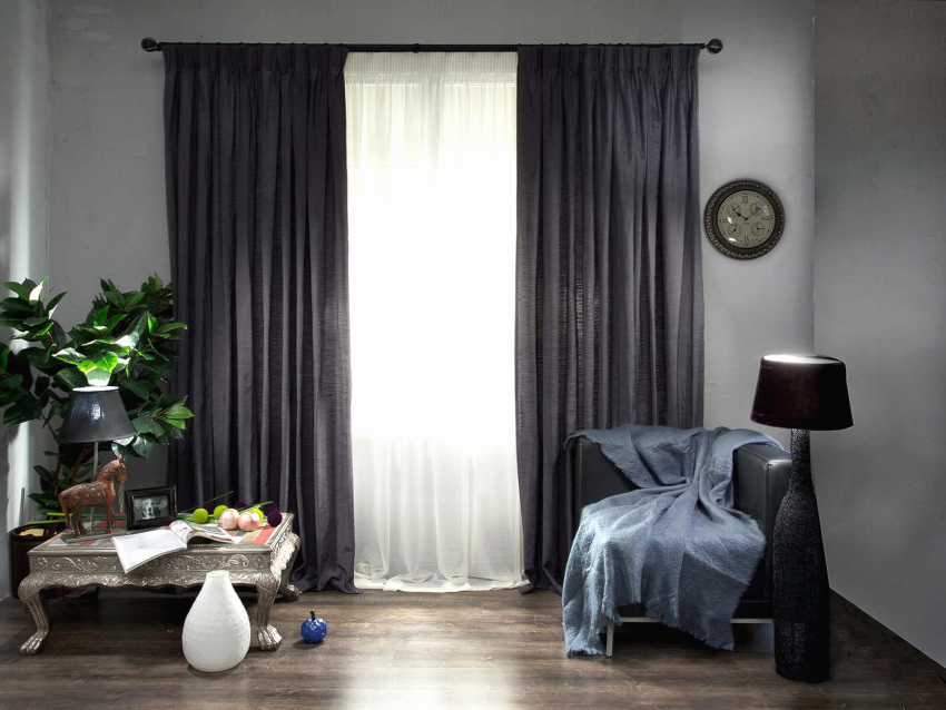 Elemen reka bentuk yang penting: langsir di bahagian dalam ruang tamu