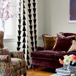 Beludru di bahagian tengah reka bentuk langsir untuk ruang tamu (foto bahagian dalam)
