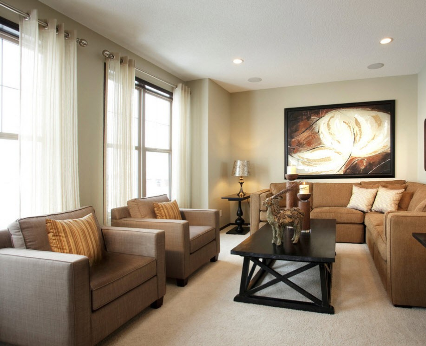 Nasihat berguna! Semasa memilih langsir di ruang tamu, berlebihan tidak boleh dibenarkan. Banyak kilauan menghapus keselesaan, penghancuran tirai gelap yang tebal, pelbagai warna terang yang mengganggu, mengganggu perasaan bebas.