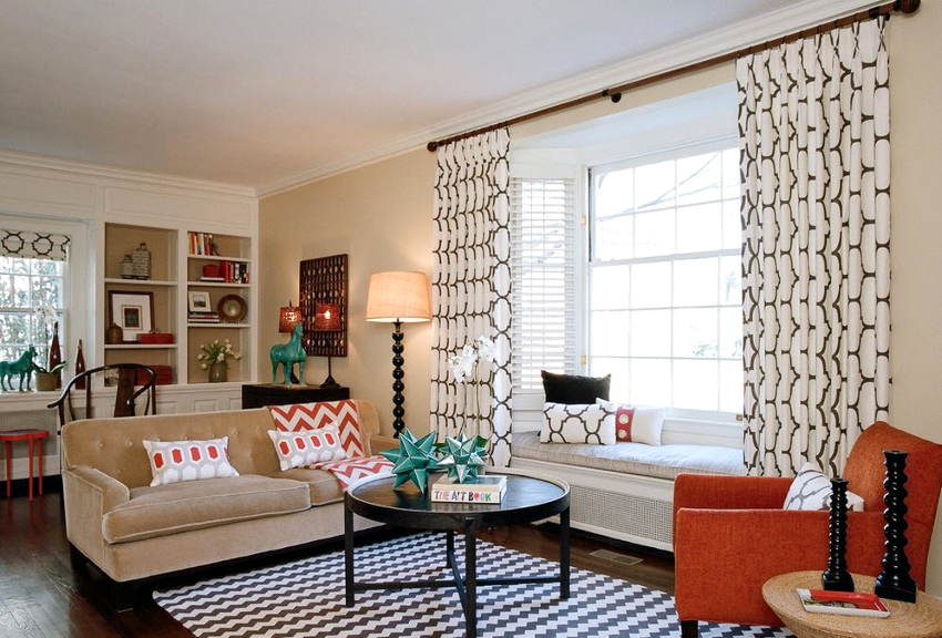 Hiasan tingkap tidak standard: langsir di ruang tamu